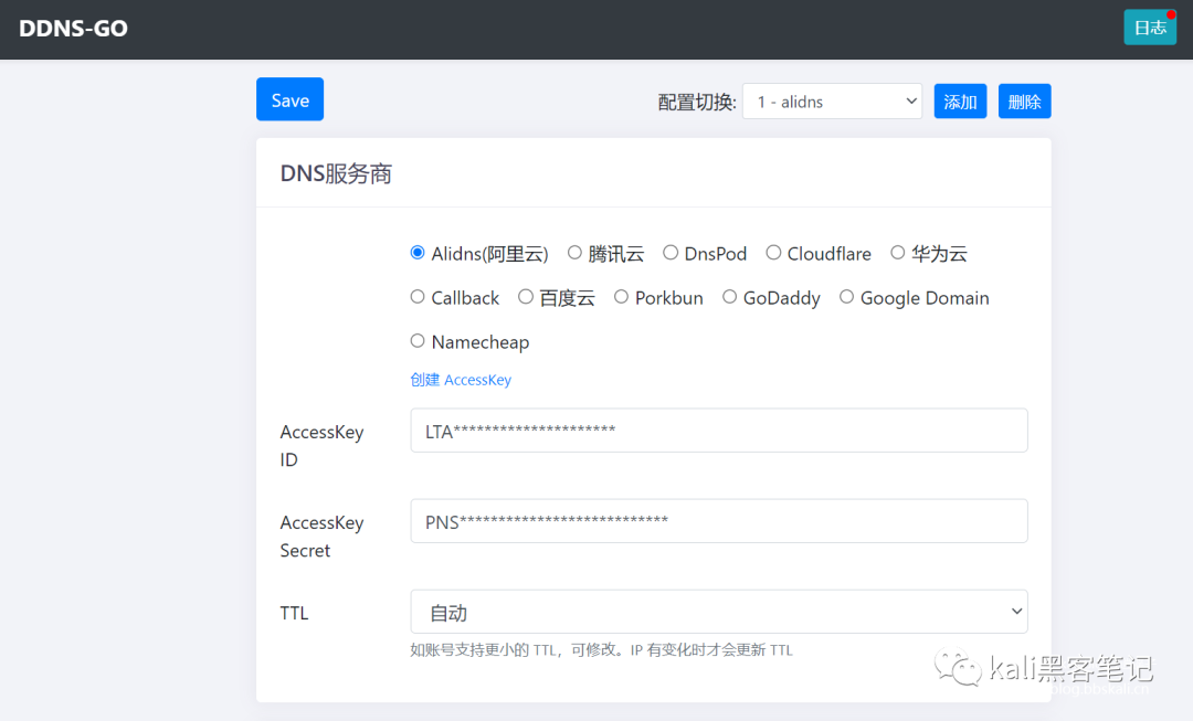 這里,我用了開(kāi)源項(xiàng)目https://github.com/jeessy2/ddns-go 根據(jù)系統(tǒng)類型下載并啟動(dòng) sudo ./ddns-go -s install 然后訪問(wèn)http://127.0.0.01:9876/配置。