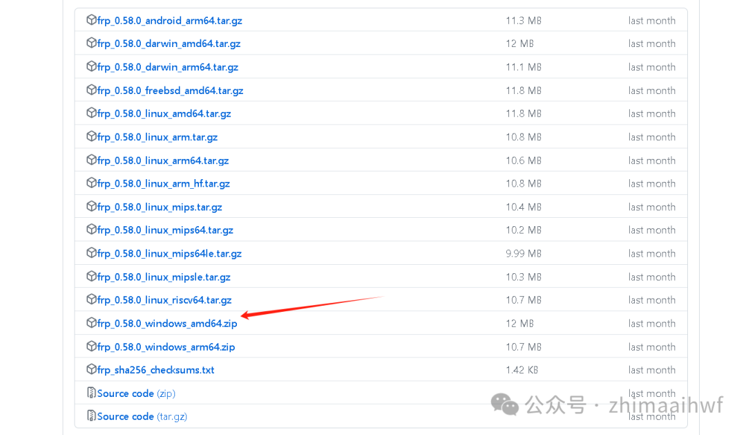 找到frp_0.58.1_windows_amd64.zip 點擊下載