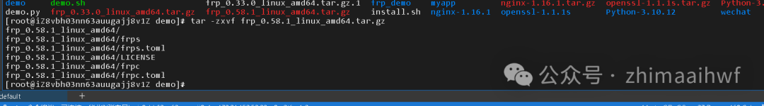 進(jìn)入frp_0.58.1_linux_amd64文件夾:cd frp_0.58.1_linux_amd64/