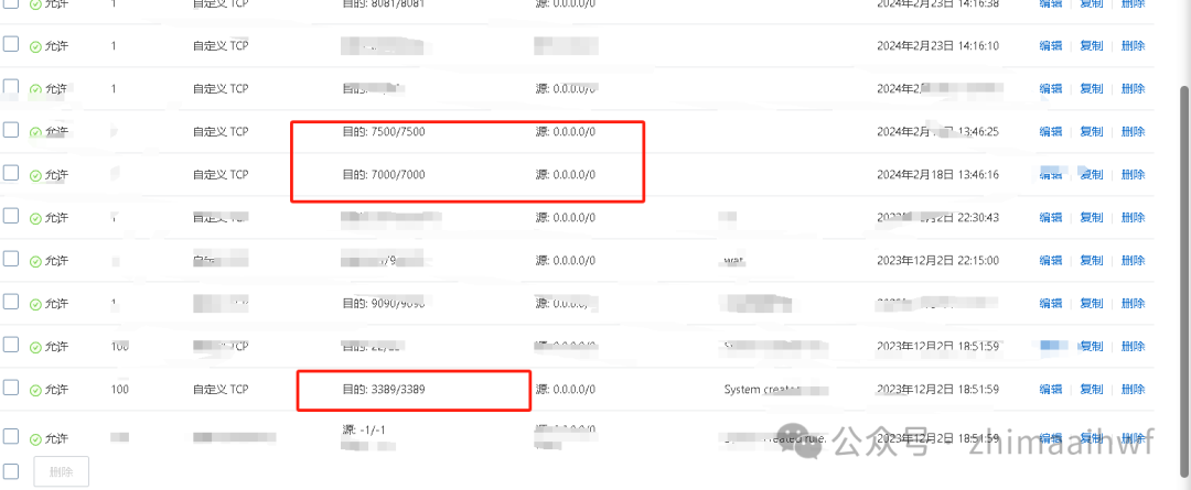 這里以阿里云來設(shè)置,找到安全組再添加端口(7001,7000,3389,7500):