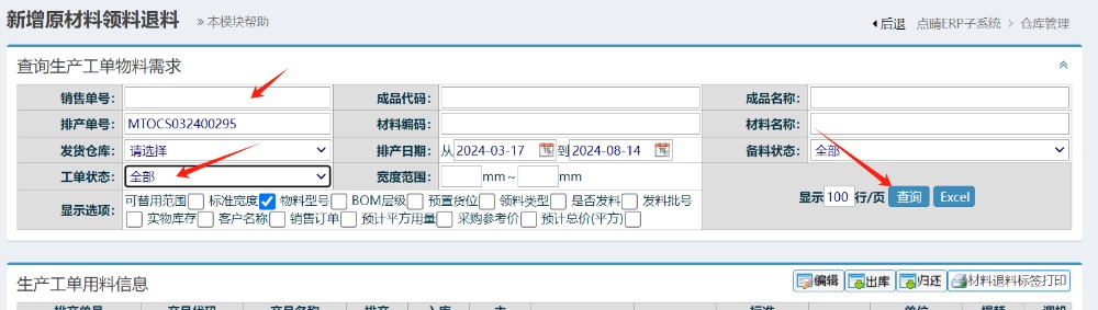 點(diǎn)晴模切ERP如何查詢核對(duì)生產(chǎn)單領(lǐng)料情況