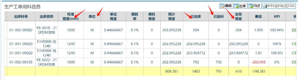 ![]() 操作步驟,如下圖: 倉(cāng)庫(kù)管理-物料出庫(kù)管理-生產(chǎn)領(lǐng)料出庫(kù)-新增領(lǐng)料出庫(kù)單 進(jìn)入界面后,輸入工單單-工單狀態(tài)選全部-點(diǎn)擊查詢按鈕 對(duì)應(yīng)就能顯示領(lǐng)出退料的匯總數(shù)據(jù)
