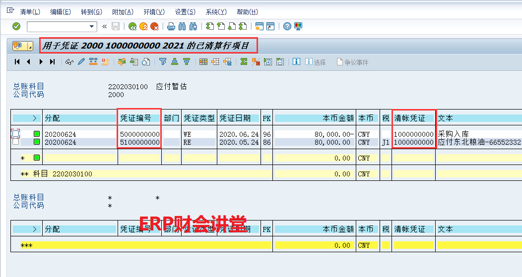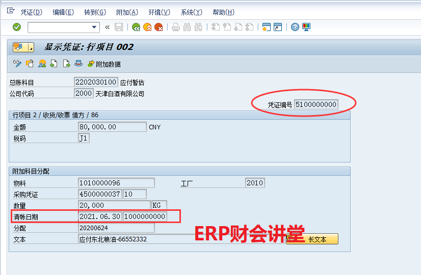 可以發(fā)現(xiàn)對應(yīng)的清賬憑證為1000000000,雙擊查看清賬憑證如下: