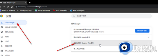 第二步:在打開(kāi)的設(shè)置窗口中點(diǎn)擊“您與Google”——“自定義您的Chrome個(gè)人資料”;