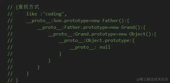 也就是說,v8在查找對象的屬性時(shí),如果沒找到,就會(huì)順著對象的隱式原型往上查找,如果還找不到,再順著隱式原型的隱式原型往上找,直到找到null為止,在這個(gè)過程中,但凡有一個(gè)步驟能找到,就會(huì)返回值。這個(gè)鏈狀的查找過程稱為原型鏈