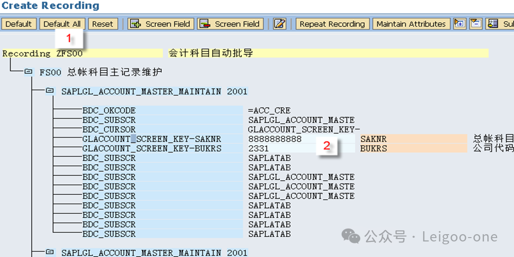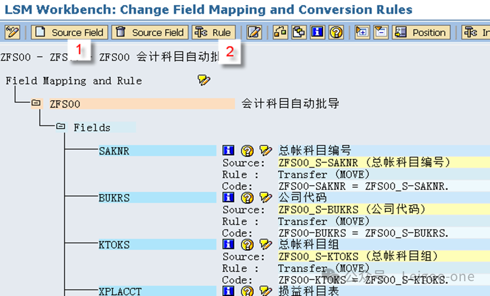 (1)CATT:Computer Aided Test Too (計算機輔助輸入測試) (2)BDC:Batch Data Communication(批處理) (3)LSMW:legacy system Migration workbench(遺產(chǎn)系統(tǒng)遷移工作臺) 對于一個新人,LSMW 的困難主要在于: 1、對LSMW本身的認(rèn)識和理解 2、業(yè)務(wù)操作面的困難。 這個是在錄屏的過程中使用具體的TCODE去進(jìn)行實際業(yè)務(wù)處理的錄屏過程方面的困難。 首先,有些事務(wù)碼錄屏?xí)r的界面和我們平時使用的界面并不完全一致,這就要求對前臺的業(yè)務(wù)處理比較熟悉; 其次,錄屏過程中可能會有很多的無關(guān)字段,甚至因為無關(guān)操作觸發(fā)的更多無關(guān)的東西,如果對這些不夠熟悉,則會在錄屏結(jié)果中看到凌亂復(fù)雜的字段信息。 也就是說,在錄屏前,你要基本保證自己對業(yè)務(wù)處理過程足夠熟悉,且要精簡,不要有過多無關(guān)操作,最后一定要觸發(fā)保存;也就是說,你錄屏?xí)r操作的一條數(shù)據(jù),它本身應(yīng)該是已經(jīng)完成且保存了。另外,一個教訓(xùn)是,錄屏?xí)r盡量選擇直接手動輸入錄屏,避免復(fù)制,指SAP的復(fù)制功能,不是Ctrl+C/V,因為可能會丟失一些字段導(dǎo)致錄屏失敗。 以建立會計科目(Tcode:FS00)為例。執(zhí)行事務(wù)代碼:LSMW,如下圖: ![]() 點擊創(chuàng)建,輸入project項目編碼和描述;或者選擇已有的項目,在已有項目下面創(chuàng)建。選擇或者創(chuàng)建對應(yīng)的子項目Subproject。創(chuàng)建項目包Object。 輸入Project、Subproject和Object后,點“執(zhí)行”按鈕或回車,進(jìn)入LSMW操作界面,可以看到LSMW共有14個單獨步驟,從Maintain Object Attributes->Run Batch Input Session,如下圖。接下來,按菜單操作就可以了。 ![]() 注:Project/Subproject/Object取名不能太長,否則在第7步”Specify Files”可能出現(xiàn)文件長度錯誤。 1、 Maintain Object Attributes第一步的主要任務(wù)實際上是創(chuàng)建錄屏Recording。 ![]() 如上圖,首先選擇“Display<->Change”進(jìn)入修改狀態(tài),再選擇“Batch Input Recording”, 一定要在該字段填入Recording名,由于該Recording可能還并不存在,因此,需要選擇上圖的[1]的標(biāo)志;或者,點擊菜單go to--recordings,如圖: ![]() go to recording后顯示如下: ![]() 選擇新建按鈕,Recording輸入“ZFS00“,確定后輸入Tcode:FS00,開始錄屏。 注:Recording輸入的“ZFS00“就是Tcode:SM35顯示的會話名稱,在第13步”Create Batch Input Session”將產(chǎn)生這個會話。 ![]() 錄屏結(jié)束后,如下圖,系統(tǒng)自動列出操作所有操作屏幕和數(shù)據(jù)字段。 ![]() 雙擊數(shù)據(jù)字段,如科目,輸入字段名稱SAKNR(保持和SAP屏幕字段一致,也可叫KJKM)和數(shù)據(jù)字段描述。為批導(dǎo)涉及的所有字段都建立好字段名稱和字段描述。 ![]() 注: (1)可以點”Default All”按鈕取所有字段的默認(rèn)值。 2、 Maintain Source Structures建立一個源結(jié)構(gòu)。 ![]() 定義我們自己要以TXT文件提供的數(shù)據(jù)源的格式的名稱,注意是數(shù)據(jù)源的名稱,相當(dāng)于一個結(jié)構(gòu)的名稱,不是文件名也不是字段名。接下來將為該結(jié)構(gòu)建立批導(dǎo)字段。 3、 Maintain Source Fields定義數(shù)據(jù)源里面各個字段的名稱和文本、長度等信息,相當(dāng)于確定結(jié)構(gòu)里的各個字段。 ![]() 如上圖,按圖-[1]的”新建”按鈕,出現(xiàn)圖-[2],填入字段名稱、描述、長度和字段類型,假設(shè)批導(dǎo)需要上圖-[3]的這些字段,則批導(dǎo)的Excel(最后可存為制表符為分割符的Txt文本)數(shù)據(jù)內(nèi)容必須按這些字段的順序組織,如果字段不對,可以使用上圖-[4]的兩個按鈕調(diào)整順序。 強調(diào):最好保持Source Fields的順序、錄屏字段變量順序和批導(dǎo)數(shù)據(jù)文件字段的先后順序完全一致。 注:創(chuàng)建”Source Fields”,如果選上Selection Parameter for “imput/ConvertData”標(biāo)志,表示該字段允許從批導(dǎo)文件上載時可根據(jù)該字段進(jìn)行刷選。 一個批導(dǎo)excel數(shù)據(jù)組織示范圖,可以看到和Source fields是按順序一一對應(yīng)的。 ![]() 上面的excel前2行為注釋行,在第7步“Read Data”中可指定數(shù)據(jù)行從第3行開始,假設(shè)本例從第3行開始到第7行,共有5條數(shù)據(jù)記錄行。 此步中,選擇下圖-[1]的”Table Maintenance”按鈕,可看到如下圖-[2]的集中維護(hù)方式。 ![]() 小技巧: 這里的字段長度必須大于實際表字段的長度,數(shù)據(jù)類型和長度最好匹配,要知道一個將批導(dǎo)字段的數(shù)據(jù)類型和長度,可以采用下面的3個步驟: (1)在操作屏幕對著該字段按”F1”幫助鍵,然后選擇下圖-[1]的。 ![]() (2)比如FS00操作界面的總賬科目字段,可以看到它的字段名稱叫SAKNR。 ![]() (3)雙擊字段名可以知道SAKNR的數(shù)據(jù)類型為10位的字符型。 ![]() 4、 Maintain Structure Relations定義錄屏?xí)r產(chǎn)生的結(jié)構(gòu)與我們在2和3自己定義的結(jié)構(gòu)在結(jié)構(gòu)名層級的對應(yīng)關(guān)系,不涉及字段的對應(yīng)關(guān)系,因為5才是字段的對應(yīng)關(guān)系,相當(dāng)于是SAP把結(jié)構(gòu)名稱和里面的字段分開來處理對應(yīng)關(guān)系了。 ![]() 通常的數(shù)據(jù)遷移實例不應(yīng)復(fù)雜,本例中,由于batch input recording只有1個,所以Source structure已自動默認(rèn)分配。 5、 Maintain Field Mapping and Conversion Rules定義字段層面的對應(yīng)關(