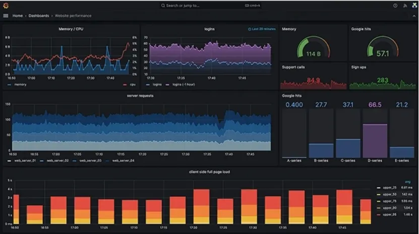 Grafana是一款開(kāi)源解決方案,用于查詢警報(bào)和探索指標(biāo)、日志和跟蹤,并將其可視化,而不管這些數(shù)據(jù)被存儲(chǔ)在哪里。Grafana提供了將時(shí)間序列數(shù)據(jù)庫(kù)(TSDB)數(shù)據(jù)轉(zhuǎn)換為有意義的圖形和可視化的工具。此外,它的插件框架允許用戶集成各種數(shù)據(jù)源,包括NoSQL/SQL數(shù)據(jù)庫(kù)和CI/CD平臺(tái)(如GitLab)。這些集成允許用戶根據(jù)他們的特定需求構(gòu)建一個(gè)全面的可觀察性解決方案,同時(shí)有一個(gè)單一的窗格來(lái)管理它。 主要特性: • 互操作性。其設(shè)計(jì)優(yōu)先考慮與直接競(jìng)爭(zhēng)對(duì)手的互操作性。這種開(kāi)放性和包容性允許組織選擇他們的工具和數(shù)據(jù)源,同時(shí)將他們所有的數(shù)據(jù)放在一個(gè)統(tǒng)一的視圖中。 • Grafana支持超過(guò)100種不同的數(shù)據(jù)源,允許用戶擁有自己的可觀察性策略,并可以自由選擇最適合他們需求的工具,而不是被鎖定在單一供應(yīng)商的生態(tài)系統(tǒng)中。 • 從項(xiàng)目早期階段,Grafana就擁有一個(gè)充滿活力和活躍的社區(qū),為其發(fā)展和增強(qiáng)做出了貢獻(xiàn)。 傳送門: https://github.com/grafana/grafana