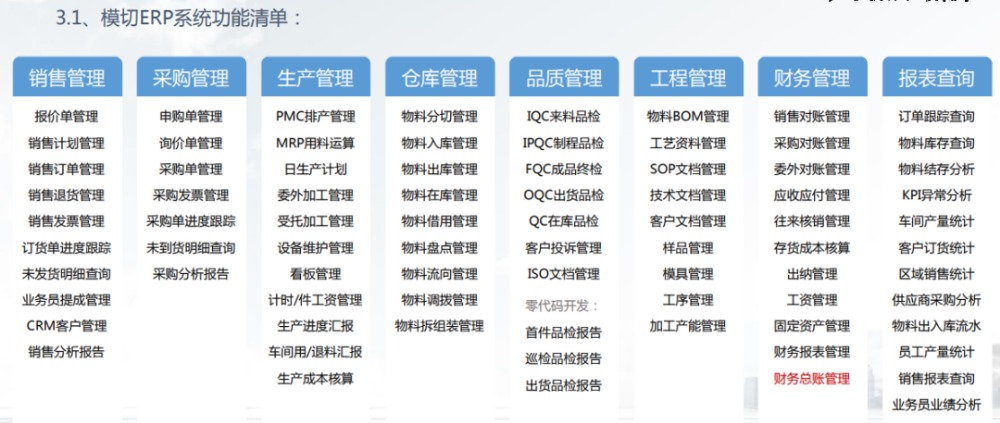 一款符合現(xiàn)代、全面而專業(yè)的ERP軟件通常包含以下核心功能: