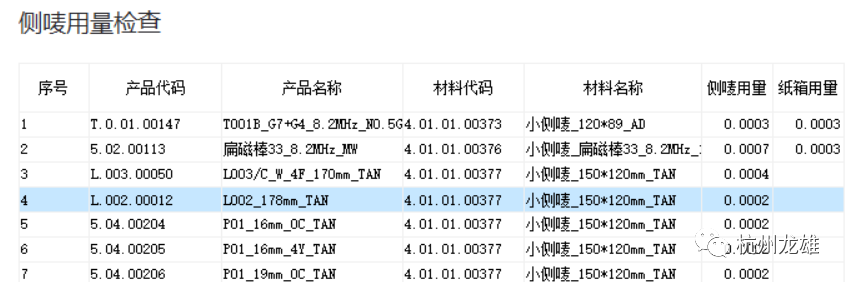 比如側(cè)嘜需要貼在紙箱上,兩邊都要貼,那么用量應(yīng)該是紙箱用量的兩倍,如果不是,很有可能是BOM有問(wèn)題,如下圖所示