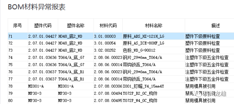 BOM數(shù)據(jù)準(zhǔn)確性,常見(jiàn)的問(wèn)題是 用量不對(duì),工時(shí)異常,存在禁用物料,循環(huán)嵌套,物料不匹配,有訂單無(wú)使用狀態(tài)的BOM等。