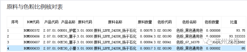 比如下圖很明顯就是將物料代碼復(fù)制到了用量里面,但是因?yàn)榫鹊膯?wèn)題,這個(gè)錯(cuò)誤不容易檢查出來(lái),如果能有異常報(bào)表能自動(dòng)檢查和預(yù)警,將事半功倍。