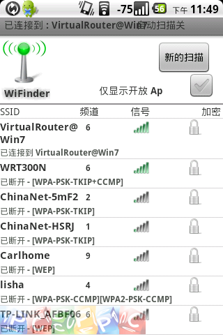 Virtual Router·讓你沒有路由器,也能實現(xiàn)手機無線共享上網(wǎng)。  Win7用戶更方便Win7到底是比WinXP晚了兩代的操作系統(tǒng),對于虛擬AP的支持上,不管是操作方式還是功能支持,都有比較大的進步。不過,盡管Win7操作系統(tǒng)本身已經(jīng)支持虛擬AP功能,但借助第三方小工具Vitual Router操作起來會更方便,所以我們這次就借助工具來完成。 Virtual Router Manager:官方網(wǎng)站 WinXP和Win7雖然都支持虛擬AP功能,不過二者可是大有不同的。WinXP采用的是Ad Hoc Networking網(wǎng)絡(luò),在這個網(wǎng)絡(luò)中,用于充當(dāng)虛擬AP的筆記本電腦,必須同時有一張有線網(wǎng)卡用于連接Internet,一張無線網(wǎng)卡用于虛擬AP;而Win7采用Virtual Router創(chuàng)建的無線網(wǎng)絡(luò)中,則沒有這種限制,也就是說只要你有一張無線網(wǎng)卡,就可以虛擬出來一個無線AP,而本機還可以通過這張無線網(wǎng)卡上網(wǎng),其他的也可以通過虛擬出來的無線AP實現(xiàn)共享上網(wǎng)——后者確實要方便了不少。 Step 01 筆記本上設(shè)置 下載、安裝、打開Virtual Router Manager后,我們只需要對它進行兩個方面的設(shè)置。一是給這個無線網(wǎng)絡(luò)起個名字,也就是SSID,比如Hotspot@Win7,其次就是為這個無線網(wǎng)絡(luò)設(shè)置一個密碼,它是采用的WPA2方式加密的,密碼長度為8位。 設(shè)置完畢后,點擊“Start Virtual Router”啟動這個可以共享上網(wǎng)的“虛擬路由器”——嚴格意義上來說,它并沒有虛擬一個無線路由器,而支持虛擬了一張無線網(wǎng)卡,再借用Win7的“Internet連接共享”達到虛擬路由器的目的。 Step 02 手機上連接 在筆記本上虛擬了一個無線路由器后,就可以打開手機的Wi-Fi功能,搜索在線的無線路由器了,很快,我就找到了Hotspot@Win7,點擊連接,并輸入密碼,就很快可以通過這個無線路由器共享上網(wǎng)了。 其他設(shè)備通過這個虛擬路由器共享上網(wǎng),還可以如“Step 01”中圖中所示那樣,在Virtual Router中留下身影。 WinXP用戶這樣做WinXP系統(tǒng)下,需要進行的操作要稍微復(fù)雜些。不過大家不用顧慮太多,跟著我走下去,一切都不成問題。 Step 01 打開無線網(wǎng)絡(luò)屬性 在“控制面板”→“網(wǎng)絡(luò)連接”中,右鍵單擊:無線網(wǎng)絡(luò)連接“,選擇“屬性”打開“無線網(wǎng)絡(luò)連接屬性”窗口。接下來我們虛擬無線AP的工作都要在這里展開。 Step 02 準(zhǔn)備添加無線網(wǎng)絡(luò) 在“無線網(wǎng)絡(luò)屬性”窗口,切換到“無線網(wǎng)絡(luò)配置”選項卡下,首先要保證“用Windows配置我的無線網(wǎng)絡(luò)配置”處于勾選狀態(tài),然后在“首選網(wǎng)絡(luò)”對話框的下方,點擊“添加”按鈕。 Step 03 添加無線網(wǎng)絡(luò) 在新打開的“(新建)無線網(wǎng)絡(luò)屬性”窗口,進行如下配置: