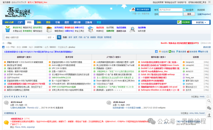 3、吾愛破解 吾愛破解論壇是致力于軟件安全與病毒分析的非營(yíng)利性技術(shù)論壇。