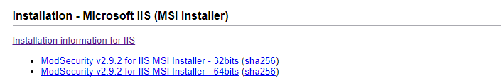 ModSecurity 是一款開源Web應用防火墻,支持Apache/Nginx/IIS,可作為服務器基礎安全設施,還是不錯的選擇。 系統(tǒng)環(huán)境:window 2008 R2+IIS 7 0X01 ModSecurity安裝 ModSecurity 下載地址:http://www.modsecurity.org/download.html 選擇相應系統(tǒng)版本下載安裝文件: