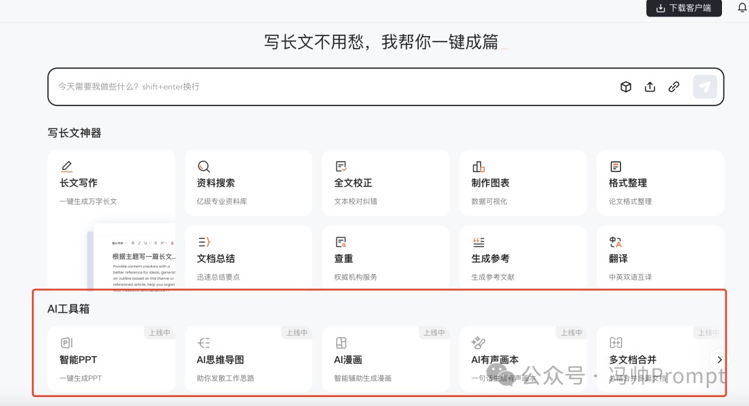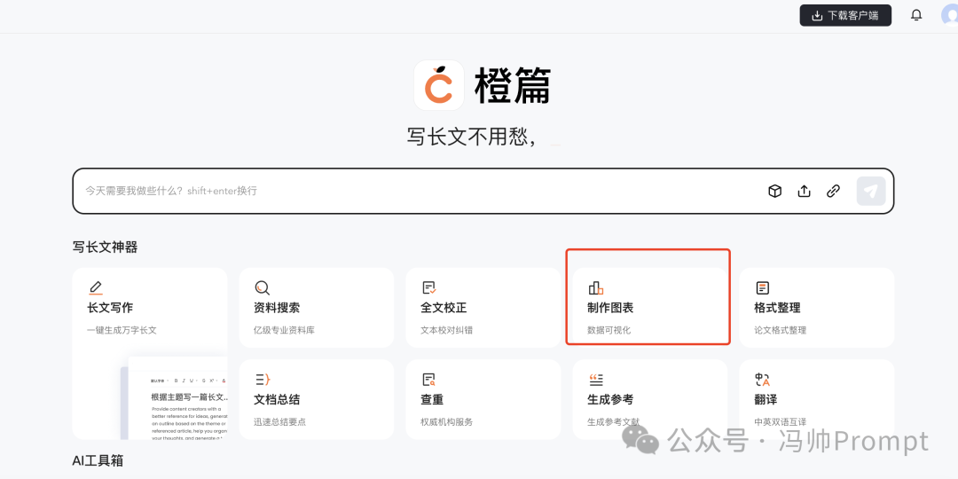 在之前有遇到處理長文本方面的場景,我一直都是用Kimi來完成。 但是昨天晚上朋友給推薦了一個最近剛上線的免費AI工具:「橙篇」,說是它的長文本能力吊打 Kimi 。 聽朋友這么一說我第一反應(yīng)是不相信的,但是在體驗了之后就被「橙篇」驚艷到了。 橙篇簡介: 橙篇是百度文庫在5.30日發(fā)布的一款集成了【知識檢索和問答】、【超長圖文理解和生成】等功能的綜合性AI產(chǎn)品。 支持數(shù)百萬字的上下文輸入,可以一鍵生成數(shù)萬字的專業(yè)知識內(nèi)容。 可以理解圖片,繪制折線圖、餅狀圖等。 接下來咱們來看一下「橙篇」的具體功能和實操效果。 1、功能介紹 界面清晰簡潔,左側(cè)欄包括【新建對話】、【創(chuàng)建在線文件】、【歷史對話】、【社區(qū)】