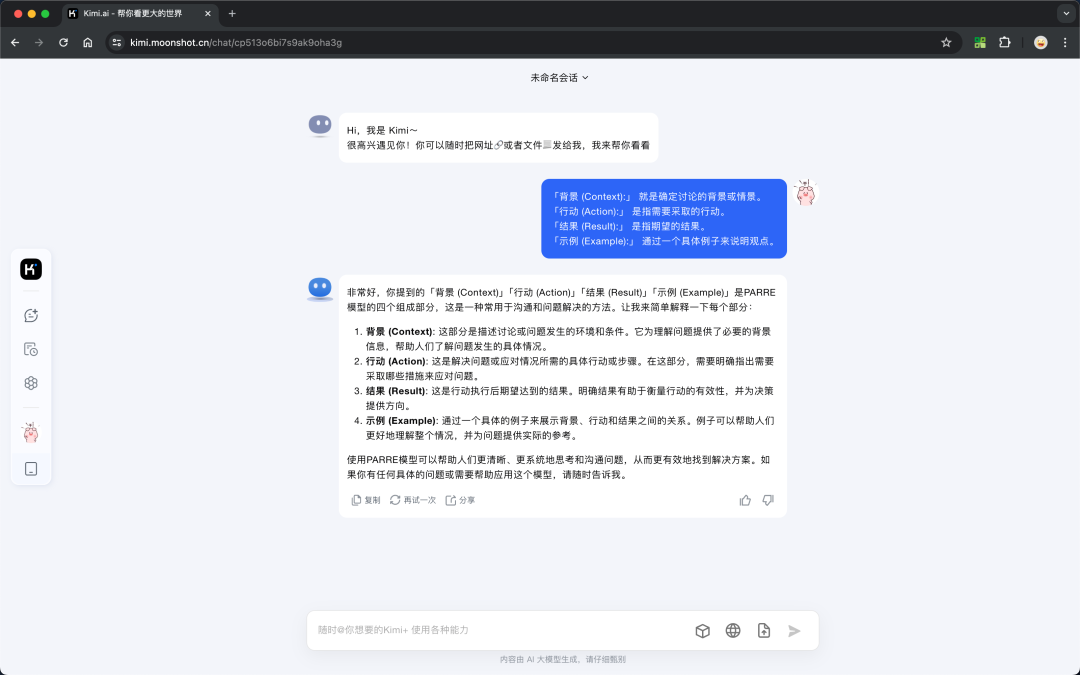 打開ChatGPT或Kimi,復制這些內容放到輸入框,按下回車,然后輸入你的問題即可。效果同上。SPAR框架: