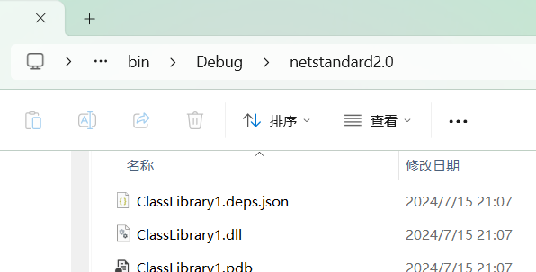 打開這個(gè)ClassLibraryNetStandard20項(xiàng)目的輸出目錄,可以看到,編譯出來的程序集被放在了