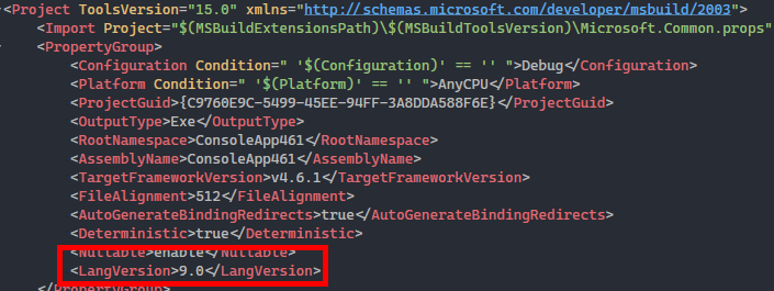 然后,修改csproj文件,將C#語言版本升級(jí)到C# 9.0: