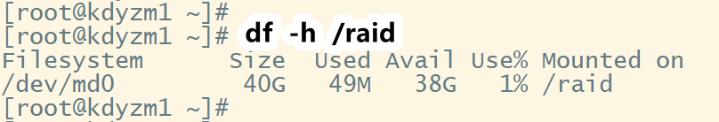 各項參數(shù)之前有過說明,不再贅述,主要是加了-x 1這個參數(shù),表示有一塊備份盤。 然后通過 可以看到正在初始化,等一會兒,等它初始化結(jié)束了再操作下一步 可以看到該RAID5磁盤陣列中有4個硬盤,但是只有3個是RAID的組成部分,還有一個 接下來進行格式化和掛載 使用 可以看到3塊20G的硬盤組成的RAID5,掛載到/raid目錄后,可用存儲大小為40G,符合預期。 然后我們將一塊硬盤
