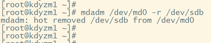 可以看到md0磁盤陣列中有四塊硬盤。 首先,我們假設/dev/sdb這塊硬盤壞了,需要先將這塊硬盤標志為不可用