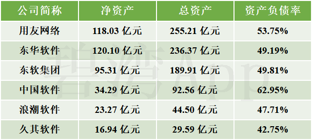 東華軟件是2023年凈資產(chǎn)最多的公司,其凈資產(chǎn)高達(dá)120.10 億元,用友網(wǎng)絡(luò)次之,久其軟件最低,只有16.94 億元。用友網(wǎng)絡(luò)是2023年總資產(chǎn)最高的公司,其總資產(chǎn)為255.21 億元,東華軟件略遜一籌,其總資產(chǎn)為236.37 億元,中國(guó)軟件資產(chǎn)負(fù)債率最高,其資產(chǎn)負(fù)債率為62.95%,久其軟件資產(chǎn)負(fù)債率最低,其資產(chǎn)負(fù)債率為42.75%。