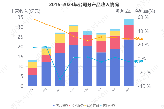 2023年公司主要從事互聯(lián)網(wǎng)業(yè)務(wù)、電子政務(wù)、集團(tuán)管控,主要產(chǎn)品包括信息服務(wù)和技術(shù)服務(wù)兩項(xiàng),其中信息服務(wù)占比69.32%,技術(shù)服務(wù)占比21.43%。