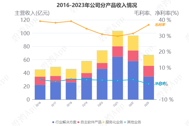 2023年公司的主營(yíng)業(yè)務(wù)為軟件服務(wù)業(yè),主要產(chǎn)品包括行業(yè)解決方案、自主軟件產(chǎn)品、服務(wù)化業(yè)務(wù)三項(xiàng),行業(yè)解決方案占比51.33%,自主軟件產(chǎn)品占比24.35%,服務(wù)化業(yè)務(wù)占比23.80%。