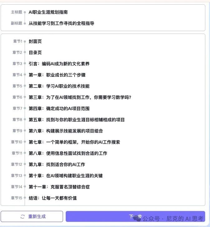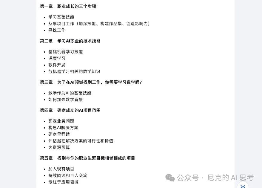 接下來(lái),kimi 按照我的提示輸出書籍的大綱的各章節(jié)要點(diǎn)