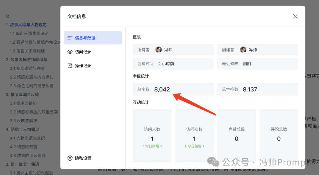 查看了一下生成字數(shù),達到了8000字,雖然沒有直接一下子輸出一萬字那么夸張,但是我們通過優(yōu)化提示詞可以顯著的提升Kimi的輸出長度,是可以滿足萬字長文的需求的。