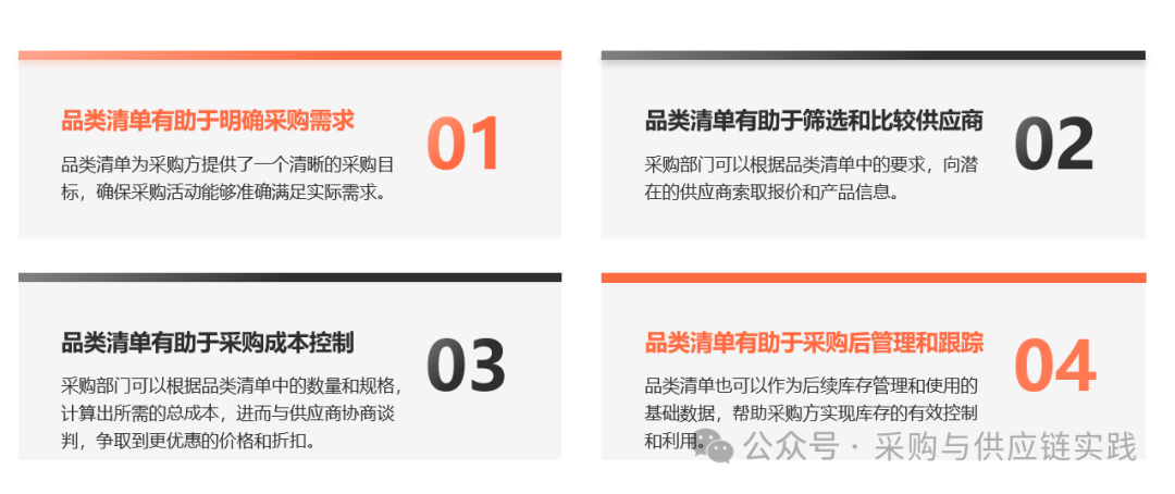 2、品類清單有助于篩選和比較供應(yīng)商。