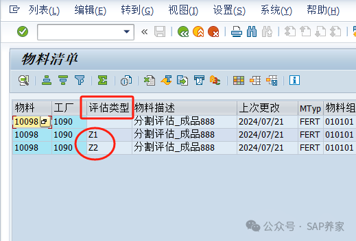 看到?jīng)],除了Z1、Z2 還有個(gè)空白的,為什么呢? 我們前面講過(guò),SAP中所有業(yè)務(wù)都要輸入評(píng)估類型,但是當(dāng)這個(gè)物料作為別人的BOM時(shí),就不能輸入評(píng)估類型了。