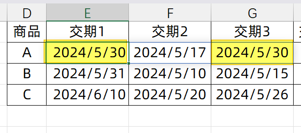 舉個工作實例,左邊是各種商品的訂單明細(xì)表,摘出來了重要的2列用來分析 每種商品,它會收到多條訂單,因此有多個交期 現(xiàn)在需要把每種商品的交期給列出來: