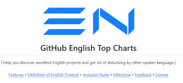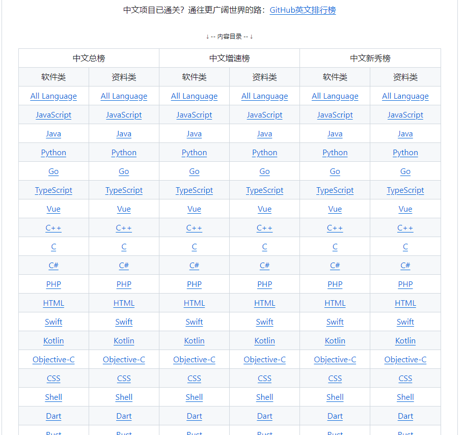 以上,由于文章篇幅原因,只以Java編程語言為例做篩選,其他語言按照類似操作即可。 四、兄弟項目當你覺得中文項目已通關,作者也提供了兄弟項目GitHub英文排行榜 項目地址: https://github.com/GrowingGit/GitHub-English-Top-Charts