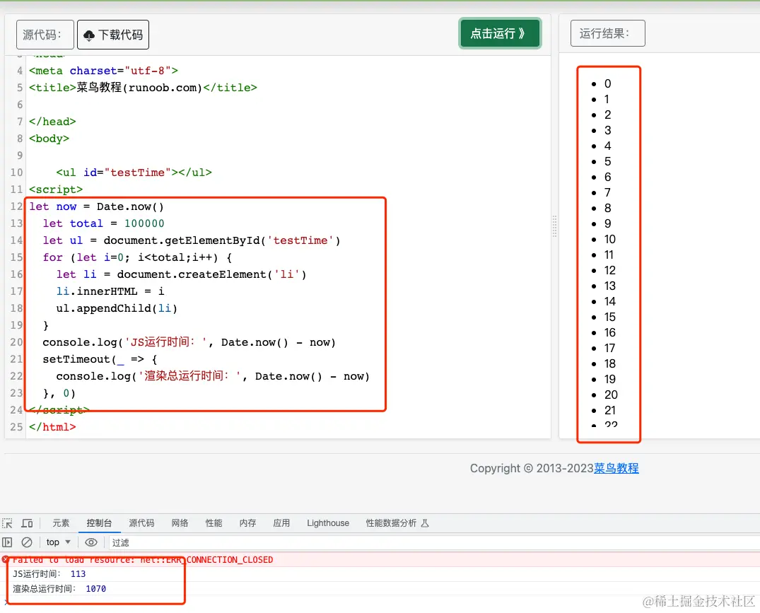 誒???我們可以發(fā)現(xiàn),js運行時間為113ms,但最終 完成時間是 1070ms,一共是 js 運行時間加上渲染總時間。