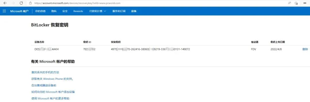 問題來了,由于微軟沒有明確提醒,這就導致很多用戶壓根不知道自己設(shè)備已被偷偷加密,更不知道恢復密鑰被保存在自己的 Microsoft 賬戶中。