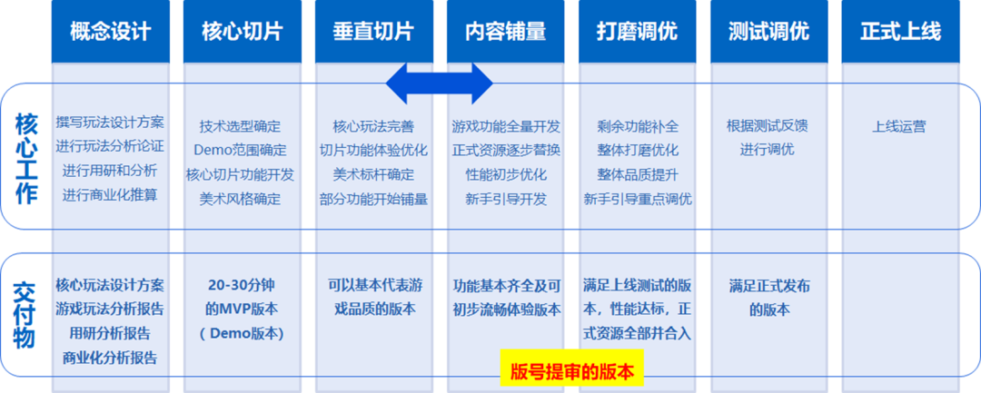 這幾天最火的莫過(guò)于《黑神話:悟空》的上線發(fā)售,8月20日當(dāng)天,登陸Steam、Wegame、EGS、PlayStation等多個(gè)平臺(tái)。當(dāng)天晚10點(diǎn),Steam同時(shí)在線人數(shù)突破222萬(wàn)、持續(xù)位列Steam今日在線人數(shù)第一,并成為Steam有史以來(lái)同時(shí)在線人數(shù)最高的單機(jī)游戲。截至8月21日上午8點(diǎn),該游戲全平臺(tái)銷量已經(jīng)超過(guò)450萬(wàn)份,銷售額超過(guò)15億元人民幣。8月21日,央視新聞進(jìn)行了報(bào)道:中國(guó)神話,驚艷外國(guó)網(wǎng)友。據(jù)說(shuō),不少外國(guó)網(wǎng)友都在打聽(tīng)一只“猴子”的身世。8月20日當(dāng)天,我身邊的同事和朋友們也紛紛踏上了西游體驗(yàn)之路。無(wú)論是宣傳視頻,還是實(shí)際在PC上看到的畫(huà)面體驗(yàn),無(wú)愧于一款真正的3A大作:A lot of money,A lot of resources,A lot of time 。《黑神話:悟空》耗時(shí)4年之久,投資3億-4億元,一上線,就成為國(guó)產(chǎn)3A游戲的頂流。我們或許只看到成功的刷屏,看到各種的熱搜,但作為一名從事游戲行業(yè)10余年的游戲項(xiàng)目經(jīng)理,深感制作一款游戲的艱難。游戲項(xiàng)目是一種非常復(fù)雜的項(xiàng)目,涉及角色眾多,不僅僅有策劃、運(yùn)營(yíng)、前臺(tái)開(kāi)發(fā)、后臺(tái)開(kāi)發(fā),測(cè)試、運(yùn)維、發(fā)行等,且美術(shù)崗位又細(xì)分有交互、UI、動(dòng)畫(huà)、特效、原畫(huà)、3D角色、3D場(chǎng)景、TA。除了角色以外,更重要的是游戲的開(kāi)發(fā)內(nèi)容,在實(shí)際項(xiàng)目研發(fā)過(guò)程中,所花費(fèi)的時(shí)間往往都會(huì)比我們所想象的要長(zhǎng)得多。盡管游戲項(xiàng)目很復(fù)雜,但是終歸有一些策略,可以更好地對(duì)游戲項(xiàng)目進(jìn)行管控,這就是今天要重點(diǎn)分享的按階段管理策略。一個(gè)真正走向成功的項(xiàng)目,是需要按階段進(jìn)行管理的。換句話說(shuō),要對(duì)項(xiàng)目進(jìn)行有效的管控,設(shè)定合理的里程碑目標(biāo)是必要手段,所以,設(shè)定里程碑目標(biāo),也稱之為按階段管理。按階段管理,不僅僅是為了更好地推進(jìn)事情(目標(biāo))本身的達(dá)成,更需要在項(xiàng)目管理的過(guò)程中聚焦團(tuán)隊(duì)的信心、凝聚力、戰(zhàn)斗力,以及團(tuán)隊(duì)成員隨著時(shí)間的變化的體驗(yàn)峰值和終值。按階段管理,強(qiáng)調(diào)的是項(xiàng)目是在逐個(gè)階段基礎(chǔ)上進(jìn)行計(jì)劃、監(jiān)督和控制。從事的角度來(lái)說(shuō),分成多個(gè)管理階段,是為高級(jí)管理層提供了整個(gè)項(xiàng)目周期主要間隔之間的控制點(diǎn),也就是說(shuō)項(xiàng)目經(jīng)理在對(duì)項(xiàng)目進(jìn)行整體規(guī)劃的時(shí)候,需要設(shè)置幾個(gè)重要的里程碑節(jié)點(diǎn),以便對(duì)項(xiàng)目進(jìn)行更好的管控。在每個(gè)階段結(jié)束的時(shí)候,應(yīng)該對(duì)項(xiàng)目的狀態(tài)加以評(píng)估,尤其是商業(yè)論證和計(jì)劃進(jìn)行階段性評(píng)審,以確保項(xiàng)目仍然有效。如有必要,甚至需要高層管理者做出項(xiàng)目是否需要繼續(xù)的決定。作為項(xiàng)目經(jīng)理的我們,必須要有一個(gè)清晰的認(rèn)知,即在項(xiàng)目管理的過(guò)程中,只有細(xì)節(jié)是可管理和可預(yù)測(cè)的,才能編制計(jì)劃。比如對(duì)一個(gè)中大型、為期2年甚至更長(zhǎng)周期的項(xiàng)目來(lái)說(shuō),不可能會(huì)做2年的詳細(xì)計(jì)劃。一來(lái)是超越合理的規(guī)劃周期編制計(jì)劃會(huì)浪費(fèi)大量的時(shí)間和精力;二來(lái)即便計(jì)劃制定出來(lái)了,可執(zhí)行性也非常差,況且這本身也不符合項(xiàng)目漸進(jìn)明晰的特點(diǎn)。因此,更合理的做法是短期的詳細(xì)計(jì)劃和中長(zhǎng)期的概要計(jì)劃。那么要達(dá)成這樣的目的,就需要根據(jù)實(shí)際情況,將項(xiàng)目劃分成多個(gè)管理階段,每個(gè)階段就是一個(gè)關(guān)鍵里程碑。里程碑是有效控制項(xiàng)目在框架內(nèi)推進(jìn)的利器。中大型游戲項(xiàng)目按階段管理的實(shí)踐既然按階段管理的本質(zhì)是確定項(xiàng)目的里程碑,那么該如何劃分?近十年,我一直從事的是在互聯(lián)網(wǎng)和游戲行業(yè)相關(guān)的項(xiàng)目。因此,劃分項(xiàng)目管理階段的實(shí)例將以游戲項(xiàng)目為例來(lái)闡述。通常來(lái)說(shuō),一個(gè)游戲項(xiàng)目可以劃分為4個(gè)階段:構(gòu)思階段、預(yù)制作、全面制作和后制作。但實(shí)際上,對(duì)于一款中大型項(xiàng)目來(lái)說(shuō),階段劃分需要進(jìn)一步細(xì)化。結(jié)合這幾年負(fù)責(zé)的一款中大型項(xiàng)目,我將其劃分為7個(gè)階段:概念設(shè)計(jì)、核心切片、垂直切片、內(nèi)容鋪量、打磨調(diào)優(yōu)、測(cè)試調(diào)優(yōu)和正式上線。在每個(gè)階段,都有其核心工作和可交付物,如圖1所示。
