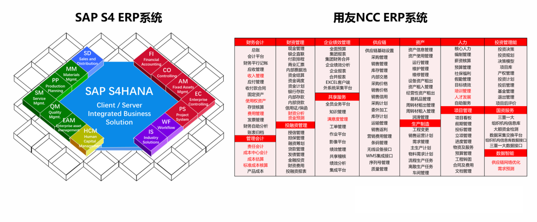 面向大型企業(yè)集團(tuán):SAP S4HANA、用友NC Cloud/BIP、金蝶EAS Cloud/星瀚、浪潮海岳GS Cloud、Oracle EBS/Fusion,等。面向中小企業(yè):SAP Business ByDesign/One、用友U8/暢捷通、金蝶星空/星辰、浪潮inSuite、Oracle NetSuite,等。