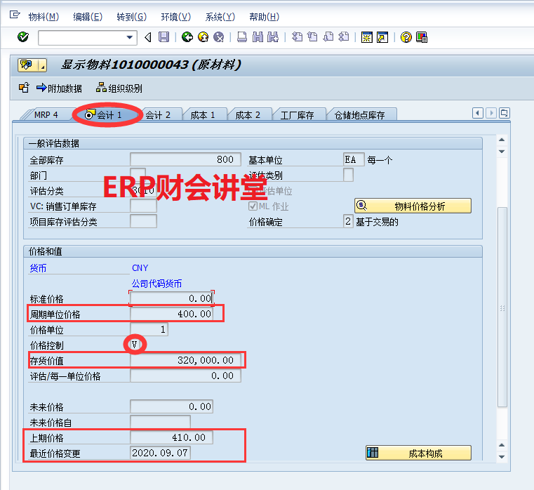 大家有沒(méi)有遇見(jiàn)這種情況,MM01創(chuàng)建物料主數(shù)據(jù)之后,發(fā)現(xiàn)價(jià)格錯(cuò)了,想要更改,但是MM02進(jìn)去價(jià)格卻是灰色的,更改不了,根本改不了! 別著急,雖然MM02不能更改價(jià)格,但是我們可以通過(guò)MR21更改物料價(jià)格。 本文介紹MR21更改物料價(jià)格,菜單路徑如下。 MR21更改價(jià)格之前,MM03查看物料1010000043的計(jì)價(jià)方式為移動(dòng)平均價(jià),價(jià)格為410.00,存貨總價(jià)值為328,000.00 。 接下來(lái),MR21將物料價(jià)格更改為400.00, 輸入更改描述后,回車進(jìn)入到價(jià)格更改界面, 輸入物料號(hào)、新價(jià)格后,保存即可。說(shuō)明:此界面中,可以一次更改多個(gè)物料的價(jià)格。完成更改后,MM03再次查看物料價(jià)格如下, 物料價(jià)格為400.00,存貨價(jià)價(jià)值為320,000.00,相對(duì)于更改之前減少了8,000.00,這部分價(jià)值去哪兒了呢? CKM3查看物料的價(jià)格歷史記錄如下, 雙擊查看價(jià)格更改憑證如下, 點(diǎn)擊“會(huì)計(jì)憑證”查看價(jià)格變更對(duì)應(yīng)的財(cái)務(wù)憑證如下, 憑證分錄為“借:材料成本差異;貸:直接材料”,存貨價(jià)值減少,對(duì)方科目為材料成本差異。事實(shí)上,對(duì)方科目是后臺(tái)配置的,也可以直接配置為損益類科目。 一般情況下,V價(jià)的物料價(jià)格實(shí)時(shí)更新,無(wú)需MR21進(jìn)行調(diào)整(除非要人為調(diào)整庫(kù)存價(jià)值)。對(duì)于S價(jià)的物料,當(dāng)差異較大時(shí),可以通過(guò)MR21調(diào)整價(jià)格。如果S價(jià)的物料存在標(biāo)準(zhǔn)成本估算(半成品/產(chǎn)成品),則不允許通過(guò)MR21更改價(jià)格。 對(duì)物料3010000003更改標(biāo)準(zhǔn)價(jià)格時(shí),提示如下信息。 提醒:工廠啟用Material Ledger之前,可以隨時(shí)通過(guò)MR21更改物料價(jià)格。啟用ML之后,對(duì)于ECC版本,S價(jià)物料一個(gè)月只能更改一次標(biāo)準(zhǔn)價(jià),一旦新的價(jià)格生效后,當(dāng)前期間就不允許再次更改價(jià)格。 點(diǎn)晴模切ERP更多信息:http://moqie.clicksun.cn,聯(lián)系電話:4001861886 該文章在 2024/9/10 11:42:18 編輯過(guò) |