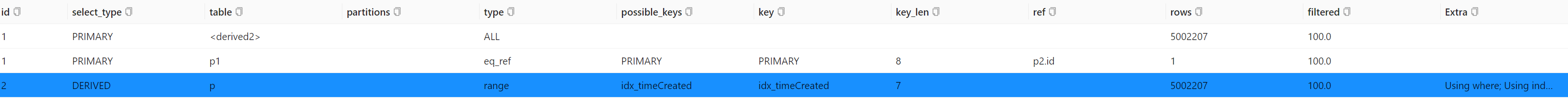 咱們發(fā)現(xiàn)和子查詢的耗時(shí)其實(shí)差不多,該思路是先通過(guò)idx_timeCreated二級(jí)索引樹查詢到滿足條件的主鍵ID,再與原表通過(guò)主鍵ID內(nèi)連接,這樣后面直接走了主鍵索引了,同時(shí)也減少了回表。 上面兩種方式其核心優(yōu)化思想都是減少回表次數(shù)進(jìn)行優(yōu)化處理。 標(biāo)簽記錄法(錨點(diǎn)記錄法)我們?cè)賮?lái)看下一種優(yōu)化思路,上述深度分頁(yè)慢原因我們也清楚了,一次性查詢的數(shù)據(jù)太多也是問(wèn)題,所以我們從這個(gè)點(diǎn)出發(fā)去優(yōu)化,每次查詢少量的數(shù)據(jù)。那么我們可以采用下面那種錨點(diǎn)記錄的方式。類似船開到一個(gè)地方短暫停泊之后繼續(xù)行駛,那么那個(gè)停泊的地方就是拋錨的地方,老貓喜歡用錨點(diǎn)標(biāo)記來(lái)做比方,當(dāng)然看到網(wǎng)上有其他的小伙伴稱這種方式為標(biāo)簽記錄法。其實(shí)意思也都差不多。 這種方式就是標(biāo)記一下上次查詢到哪一條了,下次再來(lái)查的時(shí)候,從該條開始往下掃描。我們直接看一下SQL: select * from Product p where p.timeCreated > "2020-09-12 13:34:20" and id>10000000 limit 10 顯然,這種方式非常快,耗時(shí)如下: 但是這種方式顯然是有缺陷的,大家想想如果我們的id不是連續(xù)的,或者說(shuō)不是自增形式的,那么我們得到的數(shù)據(jù)就一定是不準(zhǔn)確的。與此同時(shí)咱們也不能跳頁(yè)查看,只能前后翻頁(yè)。 當(dāng)然存在相同的缺陷,我們還可以換一種寫法。 select * from Product p where p.timeCreated > "2020-09-12 13:34:20" and id between 10000000 and 10000010 這種方式也是一樣存在上述缺陷,另外的話更要注意的是between ...and語(yǔ)法是兩頭都是閉區(qū)域間。上述語(yǔ)句如果ID連續(xù)不斷地情況下,咱們最終得到的其實(shí)是11條數(shù)據(jù),并不是10條數(shù)據(jù),所以這個(gè)地方還是需要注意的。 存入到es中上述羅列的幾種分頁(yè)優(yōu)化的方法其實(shí)已經(jīng)夠用了,那么如果數(shù)據(jù)量再大點(diǎn)的話咋整,那么我們可能就要選擇其他中間件進(jìn)行查詢了,當(dāng)然我們可以選擇es。那么es真的就是萬(wàn)能藥嗎?顯然不是。ES中同樣存在深度分頁(yè)的問(wèn)題,那么針對(duì)es的深度分頁(yè),那么又是另外一個(gè)故事了,這里咱們就不展開了。 寫到最后那么半夜三更爬起來(lái)優(yōu)化慢查詢的小貓究竟有沒有解決問(wèn)題呢?電腦前,小貓長(zhǎng)吁了一口氣,解決了! select * from InventorySku isk inner join (select id from InventorySku where inventoryId = 6058 limit 109500,500 ) as d on isk.id = d.id 顯然小貓采用了inner join的優(yōu)化方法解決了當(dāng)前的問(wèn)題。 相信小伙伴們后面遇到這類問(wèn)題也能搞定了。 轉(zhuǎn)自https://www.cnblogs.com/kdaddy/p/18270217 作者程序員老貓 該文章在 2024/9/9 9:37:58 編輯過(guò) |