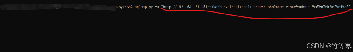 執(zhí)行命令:python2 sqlmap.py -u "http://192.168.121.151/pikachu/vul/sqli/sqli_search.php?name=vince&submit=%E6%90%9C%E7%B4%A2"