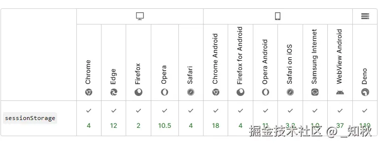 sessionStorage 是廣泛支持的 API,適用于以下瀏覽器: