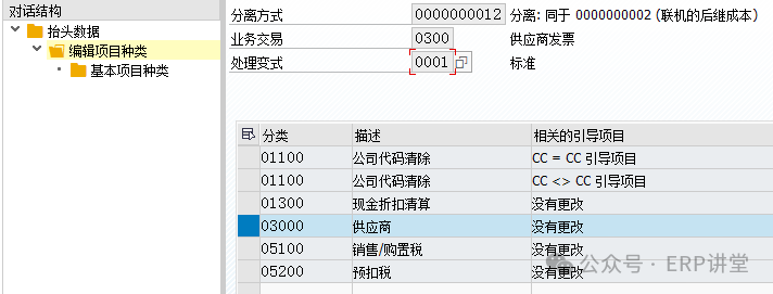 6.定義總賬會(huì)計(jì)核算的憑證分解特征 事務(wù)代碼:SM30 - V_T8G12 系統(tǒng)路徑:IMG→財(cái)務(wù)會(huì)計(jì)->總賬會(huì)計(jì)->業(yè)務(wù)交易->憑證拆分->為文檔拆分給文檔類(lèi)型分類(lèi) 配置目的:維護(hù)憑證類(lèi)型對(duì)應(yīng)的業(yè)務(wù)交易和交易變式 配置屏幕: 一般使用系統(tǒng)交付的標(biāo)志配置,如果有新建的憑證類(lèi)型,才需要維護(hù); 我們?cè)趹{證錄入的時(shí)候,會(huì)有不同的憑證類(lèi)型,比如錄入供應(yīng)商發(fā)票KR,支付供應(yīng)商貨款KZ等等,可以簡(jiǎn)單理解成Business Transaction就是對(duì)應(yīng)到了實(shí)際操作中的某一項(xiàng)或某一類(lèi)業(yè)務(wù)。同樣,這也是系統(tǒng)預(yù)定義好了,我們不能去自定義。