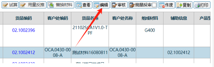 ![]() 點擊進入 如下圖: ![]() 選擇一個料號點中后,點擊編輯 如下圖: