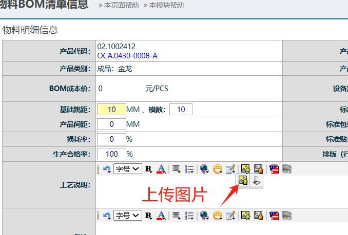 點晴模切ERP-BOM如何上傳圖片或附件保存