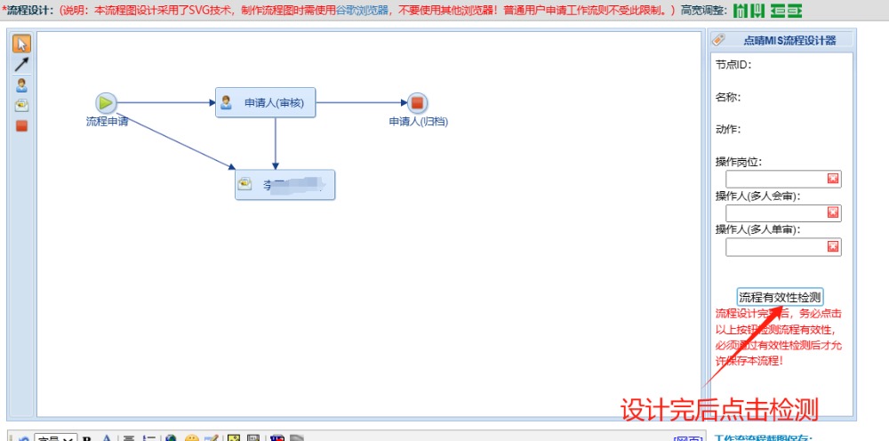 設(shè)計(jì)完審核流后,點(diǎn)擊檢測(cè)流程是否有誤
