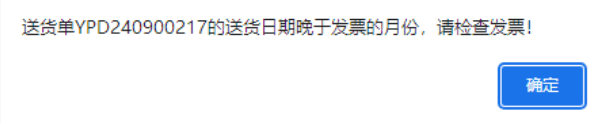 點(diǎn)晴模切ERP-彈出提示:送貨日期晚于發(fā)票的月份,請(qǐng)檢查發(fā)票!
