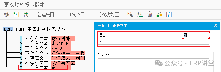 自動(dòng)項(xiàng)目代碼:在編輯報(bào)表版本的時(shí)候,每一行的行項(xiàng)目號(hào)是否可以手工輸入,如果選擇該項(xiàng),則不能手工輸入; 圖表/科目:每一個(gè)財(cái)務(wù)報(bào)表版本必須指定對(duì)應(yīng)的會(huì)計(jì)科目表; 功能范圍程序:如果啟用功能范圍,就必須選擇該功能,表示在編輯報(bào)表版本的時(shí)候,可以根據(jù)功能范圍取得數(shù)據(jù); 1.2維護(hù)報(bào)表版本的表項(xiàng): 點(diǎn)擊“財(cái)務(wù)報(bào)表項(xiàng)目”維護(hù)對(duì)應(yīng)的表項(xiàng);