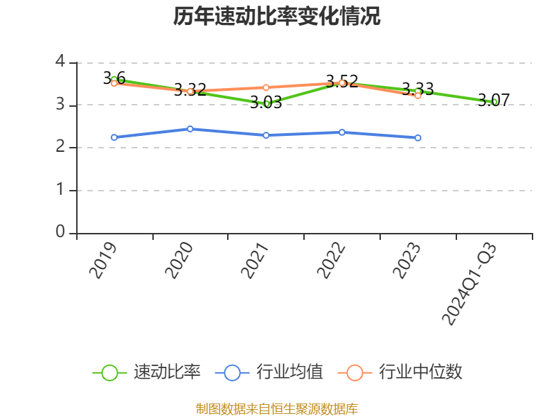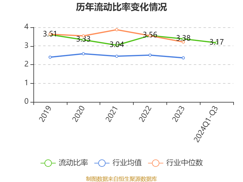 2024年前三季度,公司流動比率為3.17,速動比率為3.07。