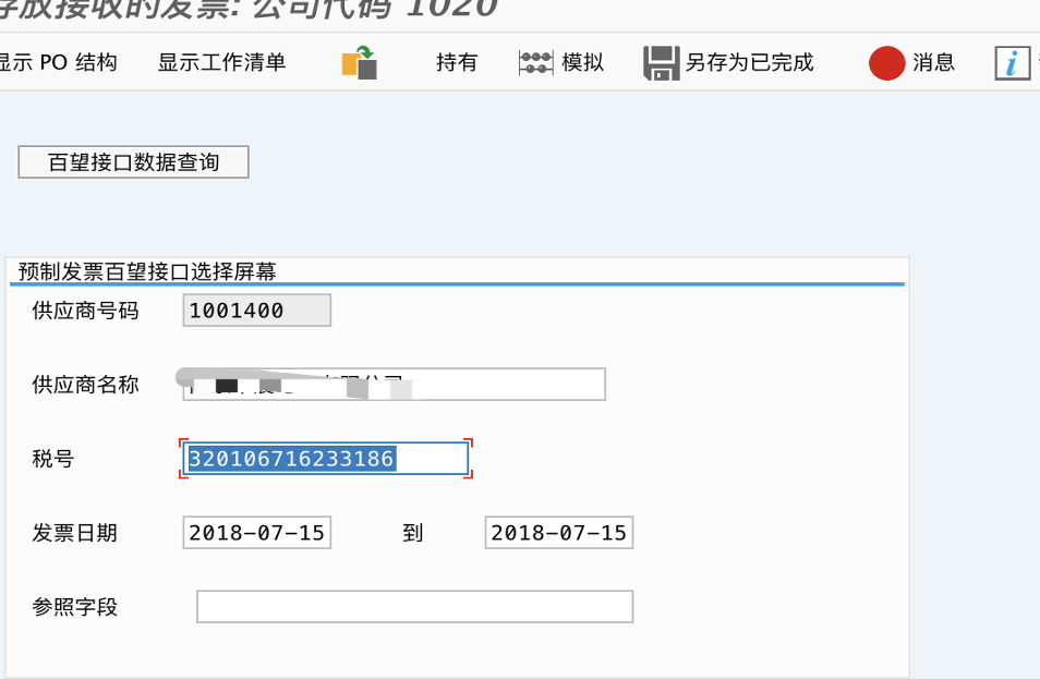 SAP、SRM相關(guān)頁(yè)面中加按鈕‘導(dǎo)入發(fā)票號(hào)’,實(shí)現(xiàn)單點(diǎn)登錄百望界面,百望開(kāi)發(fā)選擇發(fā)票號(hào)界面,選擇完成后調(diào)用接口,實(shí)現(xiàn)保存發(fā)票號(hào),對(duì)SAP中參照、分配等進(jìn)行賦值或?qū)?/span>srm相關(guān)字段進(jìn)行賦值。 SAP中發(fā)票預(yù)制憑證導(dǎo)入功能,同時(shí)保存進(jìn)百望系統(tǒng)。
