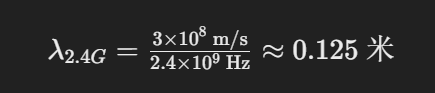 按照上面公式計(jì)算 2.4Ghz 與 5GHz 無(wú)線電波的波長(zhǎng)分別為 12.5 厘米和 6 厘米。